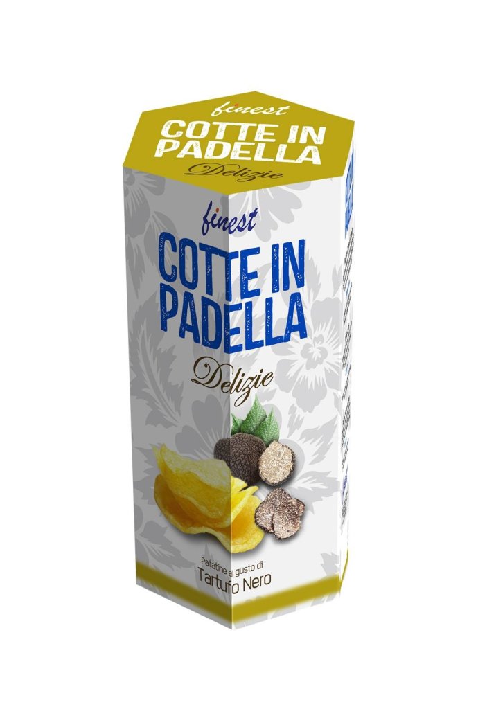 L'iconico pack esagonale custodisce l'incontro più esclusivo tra terra e tradizione. Le patatine Cotte in Padella si evolvono in un’esperienza sensoriale avvolgente, dove la croccantezza verace sposa il prestigio del Tartufo Bianco.